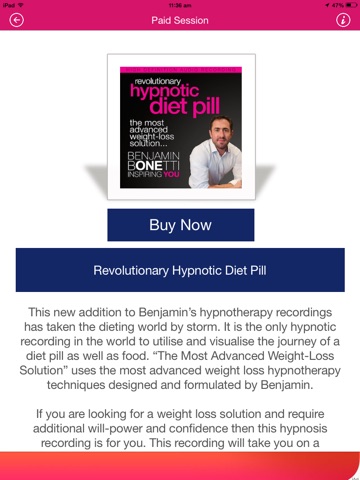 Within this cutting edge App you’ll benefit from a number of international bestselling hypnotherapy audios from renowned celebrity hypnotherapist Benjamin Bonetti,