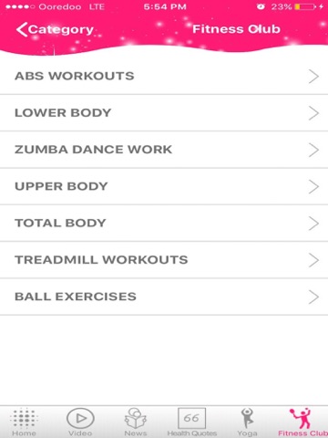 -Cardio, strength, Yoga, Stretching and Core exercises available.