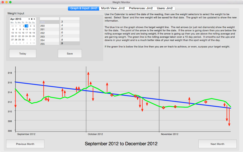 Simple to use weight control program. The rolling average makes it easy to get positive feedback for continued weight loss. Self-motivation is needed to loose weight; but positive feedback every day is encouraging. I have to get the green average line below my blue target line. Target is 75 pounds weight reduction in 6 months. This little APP will certainly help.