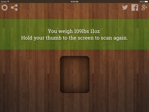 *Note: This app is meant for entertainment purposes only. The thumb print scan is only a simulation, and it does not actually have the ability to tell what your weight is!