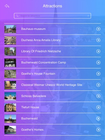 Discover whats on and places to visit in Weimar with our new cool app. Your guide to top attractions, shopping malls / locations, finding hotels, directions to hotels & Bars, Restaurants. An all-in-one app for all the local attractions.
