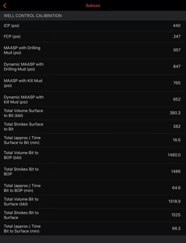 - Calculates MASP, dynamic MASP, and dynamic MASP with kill mud based on input kill parameters