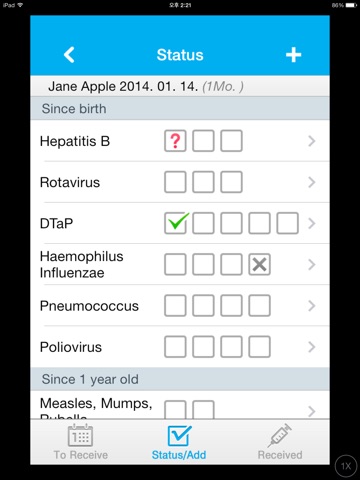 When the birthday is set, all the recommended immunization dates of the individual vaccines will be organized.