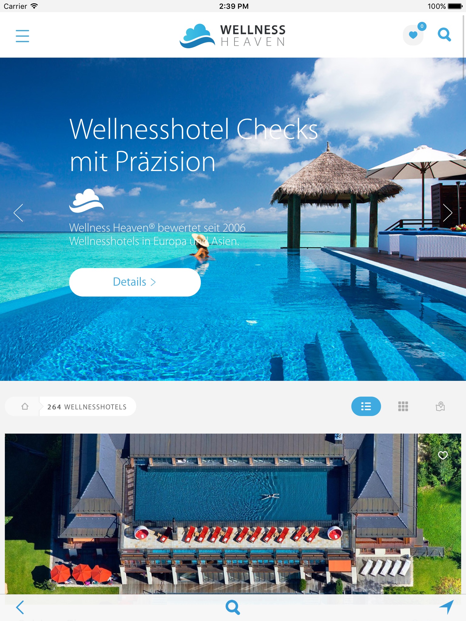 Die neue Wellnesshotel App vom Marktführer für Wellness-Suchende – optimiert für iPhone & iPad.