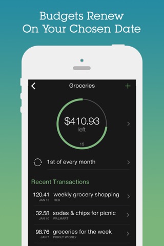 UPDATE: New update deleted all my budgets, and now crashes every time I try and add a new budget! These guys just cant get it right. The idea has always been good, but the implementation has always been terrible. -- This app is so close to being perfect, but it had major usability issues! Its worthless to me if I cant sync between multiple devices with other users. I need to know what my wife spends so we can both keep track of our budget! Also need the simple ability to rearrange the budgets once they are created. Also, need manual renewal option, and the ability to add money to a budget with a negative amount! This is easy math here. So many simple things wrong with this product that, while its so very close to being perfect, its practically unusable! I desperately hope they improve the app soon, because it could serious make my life way easier!