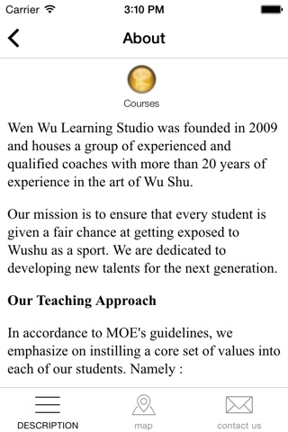 Wen Wu Learning Studio was founded in 2009 and houses a group of experienced and qualified coaches with more than 20 years of experience in the art of Wu Shu.