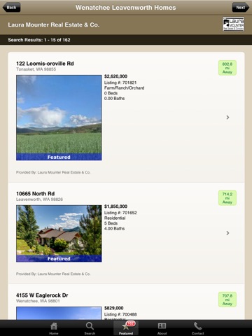 Real Estate exploration is enhanced with Wenatchee Leavenworth Homes property search on your iPhone! Your search has just become easier. No more carrying around listing flyers, trying to search for directions to each one. View eye-popping photo galleries of homes, scan featured listings, and utilize an entire area’s search with just a touch of your mobile device. With this app you now have all of this at the touch of your finger tips. Be an informed real estate consumer on the go!