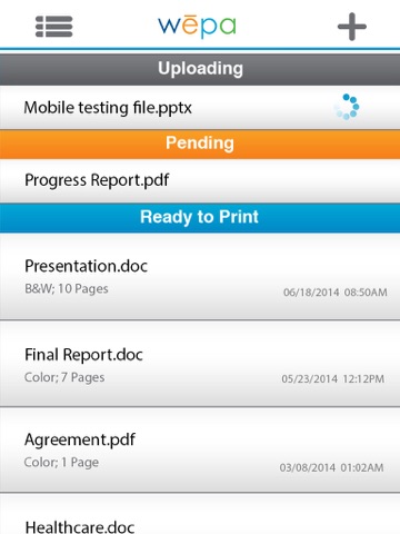 The wēpa print app allows users to send their documents to the wēpa print cloud directly from iPhones and iPads and print their documents at any wēpa print station. Print jobs are securely stored in the cloud for 96 hours and may be retrieved from any wēpa print station nationwide. Many wēpa print stations are conveniently located in colleges and universities. Various payment options are available at the wēpa print stations including credit/debit cards.