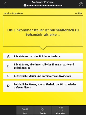 „Wer wird Steuer-Experte?“ ist ein Multiple-Choice-Quiz, mit dem Sie Ihr Fachwissen zum Thema Steuern testen können. Mit der neuen Highscore-Funktion können Sie sich nun auch mit anderen Spielern messen. Die drei Punktbesten haben außerdem regelmäßig die Chance, attraktive Preise zu gewinnen.