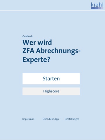 Wer wird ZFA-Abrechnungs-Experte?“ ist ein spannendes Quiz vom Kiehl Verlag mit Suchtfaktor. Für alle Azubis zur Zahnmedizinischen Fachangestellten stehen über 300 Fragen zu allen Abrechnungsthemen bereit. Mit jeder richtig beantworteten Frage erreichst du ein neues Level, wenn du 10 Fragen richtig beantwortet hast, bist du ZFA Abrechnungs-Experte!
