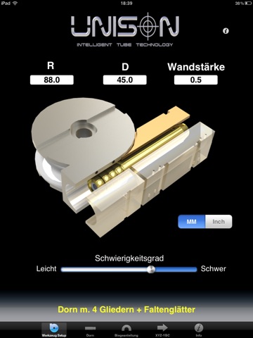 Gib einfach den Biegeradius, den Rohrdurchmesser und die Wandstärke ein und du bekommst eine Abbildung der idealen Werkzeugkombination.