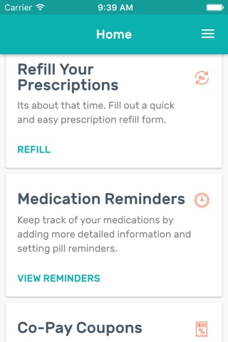 - Refill Reminders: Save time on your next refill with a reminder and refill with a single tap