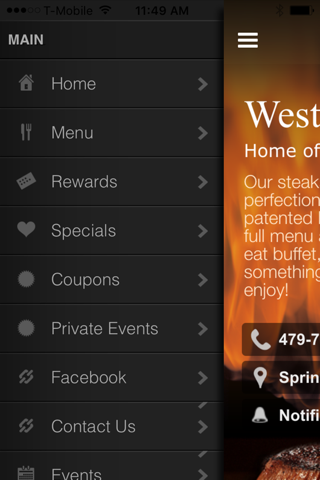 The App from Western Sizzlin in Russellville and Springdale, AR provides:
