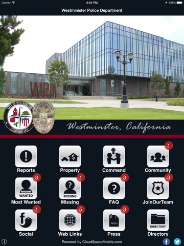 Welcome to the iPhone/iPad app for the City of Westminster and City of Westminster Police Department. The City of Westminster Police Department app allows users to report issues or concerns directly from their iPhone or iPad device, with photos! There are useful links for community resources, crime prevention, and safety tips.