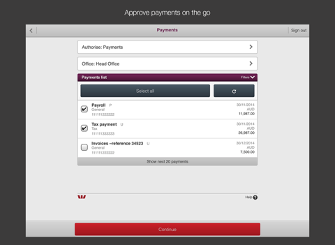 Westpac Corporate Mobile makes it easy for our corporate and business customers in Australia, New Zealand, Fiji and Papua New Guinea to do their banking securely when on the go. Whether you are in between meetings, working from home or travelling, Corporate Mobile connects you to your online banking.