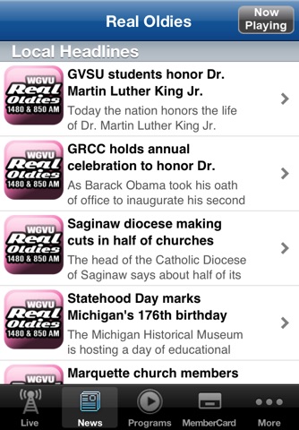 The WGVU Real Oldies App allows you to listen to WGVU Real Oldies live, pause and rewind the live audio, and view the program schedule for all the WGVU streams at once! You can explore On Demand content, search for stories, bookmark a story for later, and wake up to WGVU with the alarm clock!