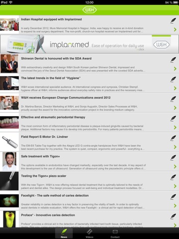 With this official W&H News App you can now read dental information anywhere - even on the go. You have access to all news, reports, studies or can explore dental videos.