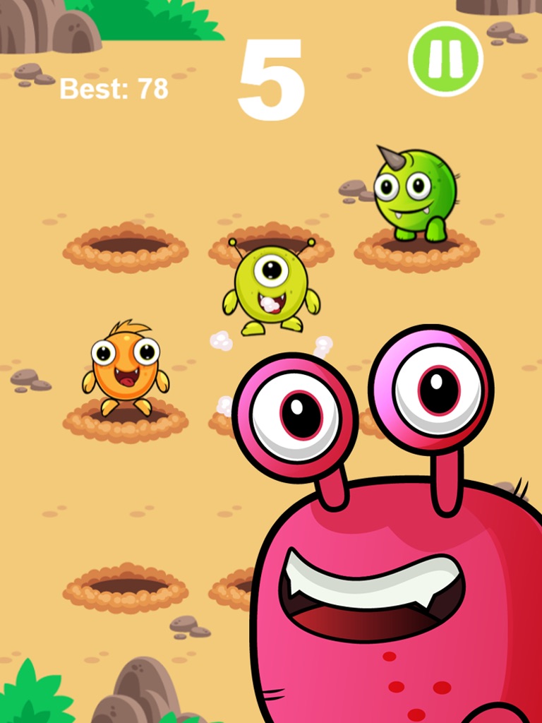 Get your mallet and hammer on, crush, hit and pop those cute plush candy eating alien Martian clans with vibrant colors. Whack on their heads before they dodge and escape from your magic touch. Yes they can escape easily with their fluffy plush bodies from being crushed by you. And be careful, their insane and horrible sounds can almost drive you crazy! dont let them laughing at you all the time just because it is in their annoying nature. Nope! Sorry you can not pick up and adopt an alien mole they will just turn into monsters after feeding them. This is not written in their book, so no Yummy time for them!
