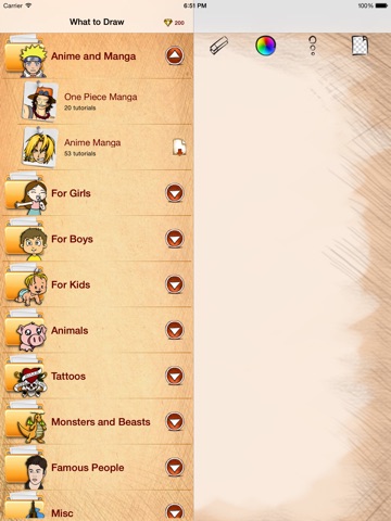 Tap on topic which you are interested in, after that think what you dream to draw and become a creator!