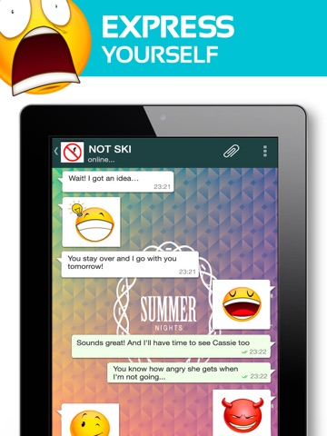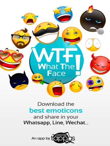 What the Face! is a free app with emoticonsfor you to express your state of mind and your emotions. You can use it in your social networks or in your messages to your friends, partner, family, aliens or even your pet (in case they have a smartphone and instant messaging service).