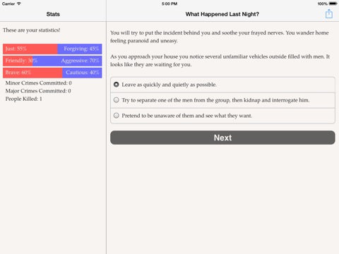 A dark but occasionally humorous action murder mystery multiple-choice text-based game by Kie Brooks.