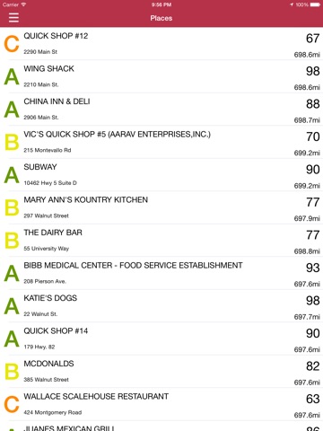 What The Health lets you easily view Health Inspection Scores for Restaurants and Bar Establishments in the State of Alabama. This multi-functional app allows you to quickly view Alabama Health Scores for every Restaurant near you. Not only can you view Health Inspection Scores for restaurants in Alabama, you can get directions and share scores with friends on Facebook!