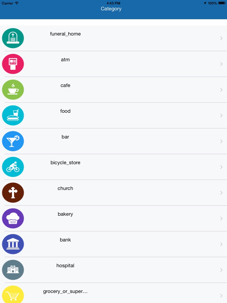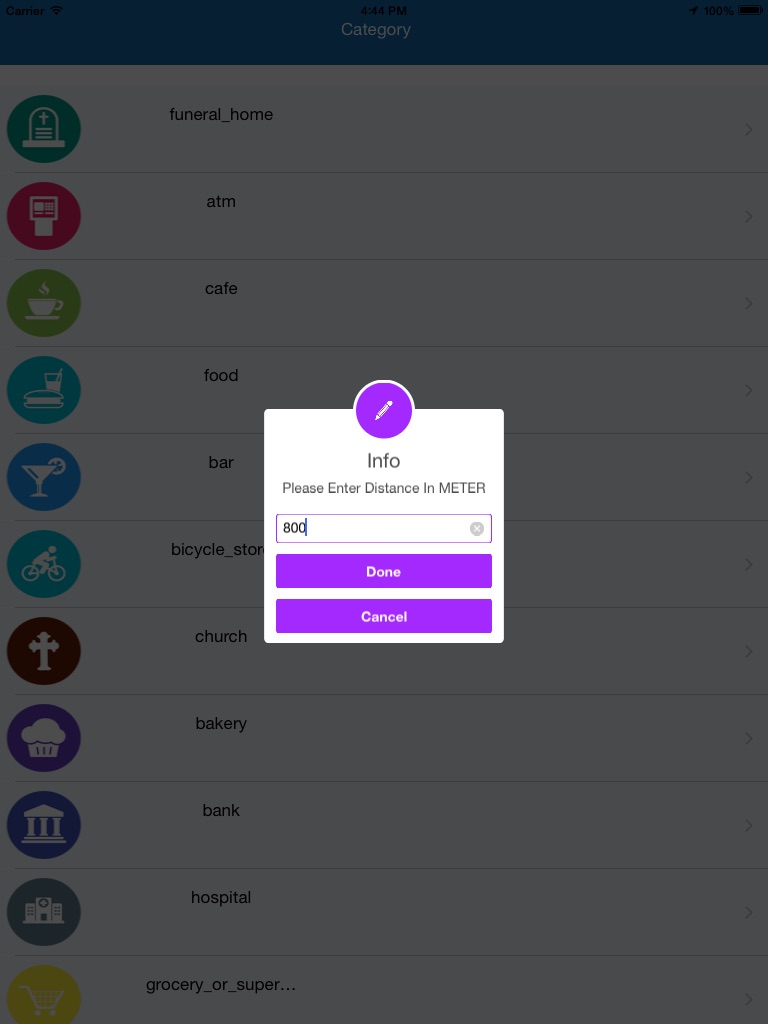 --> Select the category from the list of categories. Ex. Select Banks if you want to find nearby bank