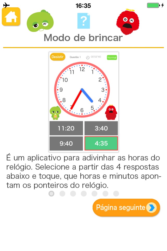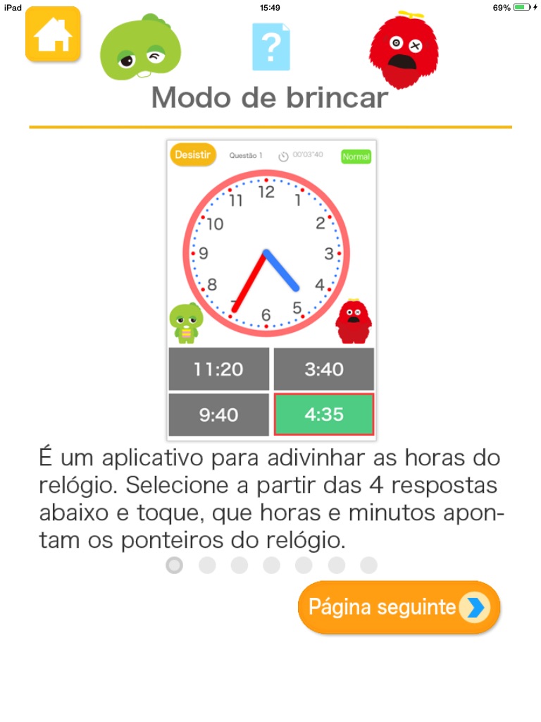 This is an app in which you must choose which of the panels matches the time shown on a clock.