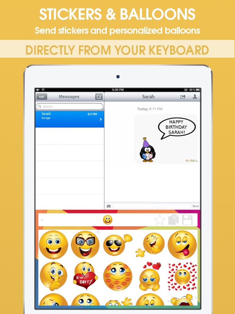 - EMOJIS: hundreds of big emojis are available to be shared everywhere;