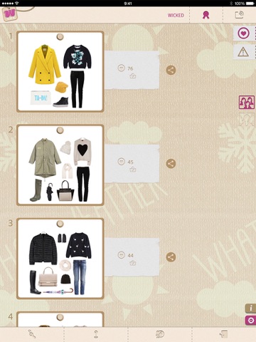 In "Top 10" you will known the worldwide preferences: which are clothes or outfits more loved, which are most fashionable and which are pieces that most people have. You can also share it through Twitter or Facebook. You will known which are the essential items of the season, those which will be in all the closets or those that will be the more fashionable in order to decide what pieces to invest.