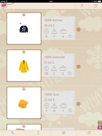 “TOP 10” CLOTHES: you will find out which 10 pieces are the most desired, which 10 garments most people have or which 10 clothes set trends. If you login, you can create your own bookmarks and and compare them with the rest of the world.