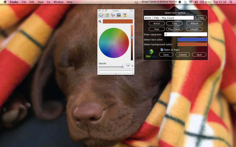 You can select the separator character, and even the text color and background color. Moreover you can control iTunes with the basic play control buttons.