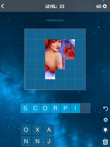 New Zodiac Signs picture puzzle game. Reveal the pic and guess the word. Do you know all about 12 Zodiac Signs? 250+ levels.