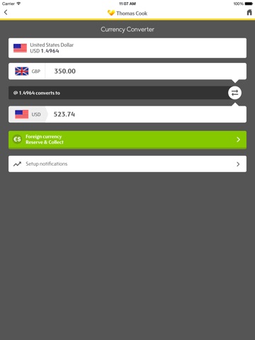 Reserve online and collect your travel money or Cash Passport travel money card, in store at one of our high street locations with the Thomas Cook Whats the Rate free currency app. Whether you want to convert your pounds into Euros, US Dollars, Egyptian Pounds or Turkish Lira, Thomas Cook have 50 currencies that are commission free when purchased in store.