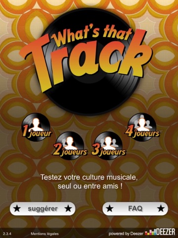 "Whats that Track?" is a music quiz game. Check your your musical knowledges either alone or with your friends. Identify more than 700 tracks or artists, sorted by musical style: Eighties, Clubbing, Electro Pop, TV Theme, Movie Soundtracks, Rock, Hip-Hop, Metal, Jazz, RNB...
