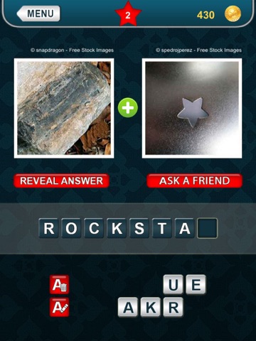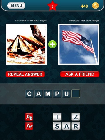 Each level contains 2 pics. Combine them to create 1 word! Can you guess the word?