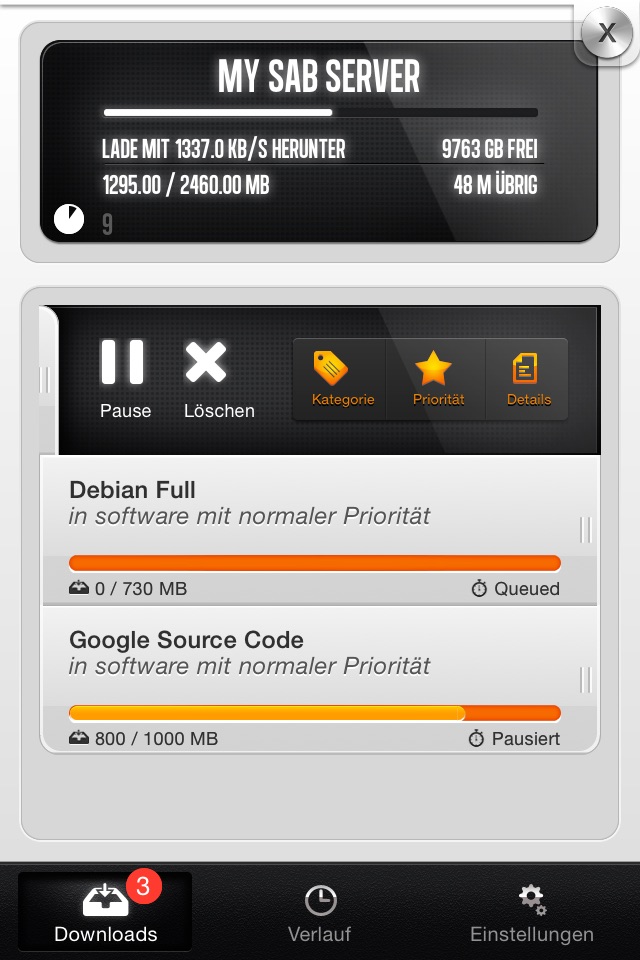 WhatSAB is the most beautiful iOS remote control interface for your SABNzbd server.