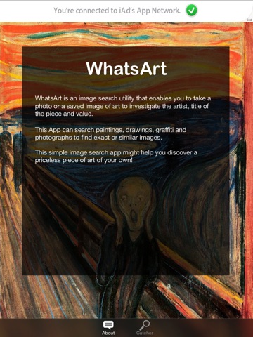 WhatsArt is an image search utility that enables you to take a photo or a saved image of art to investigate the artist, title of the piece and value. WhatsArt can search paintings, drawings, graffiti and photographs to find exact or similar images.