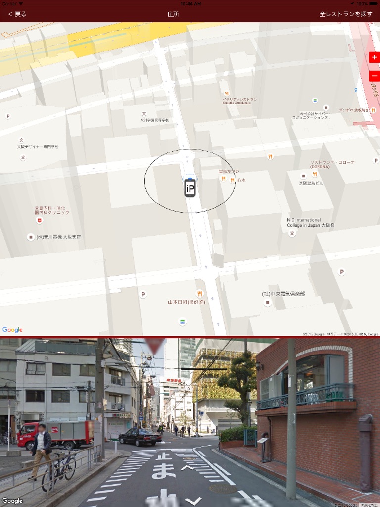 3 The table and the markers of neighboring restaurants are displayed when you push the button of switch. You can return to an original street view screen when you push the same button once again.