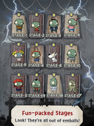 Oops! Zombies dropped their eyeballs in this peaceful zombie town.