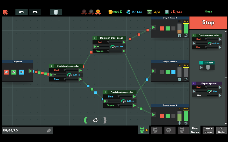 Drag objects around your screen with a mouse! Connect them with lines (oh yeah)! Try. Fail. Optimize. Try again. Then press “Release” button and see that sweet pieces of data flow smoothly through your screen.