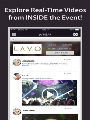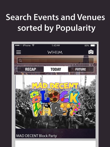 • Looking for something to do? Whim has a feed of events based on your selected categories and location.