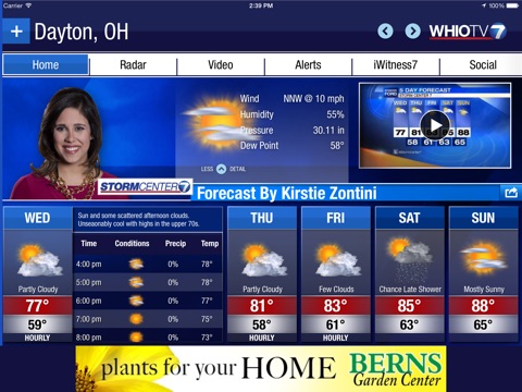 WHIO Weather is more accurate, but with the Weather Channel apps hourly forecast I can check the hourly humidity, the wind speed, and it takes most of the screen so I can tell whether or not to expect thunderstorms or rain. WHIOs hourly forecast only takes the lower third of the screen and its weather icons are too small.