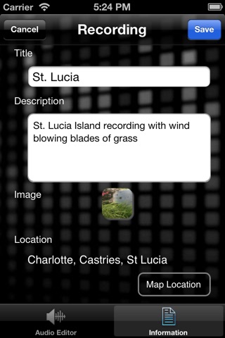 - Attach a photo and GPS location to your custom sound