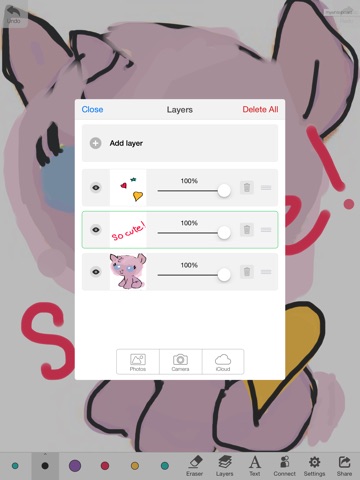• Newly-redesigned interface! Its truly a pleasure to use. In the Info screen, disable the tab toolbar feature to get a full-screen canvas to play with. To bring up the drawing tools, tap the arrow button at the bottom right.