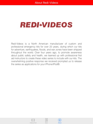 Redi-Videos also offers complete Industrial First Aid Training and Watercraft Safety Courses. Please see our other apps in App World by typing Redivideos into the search box.