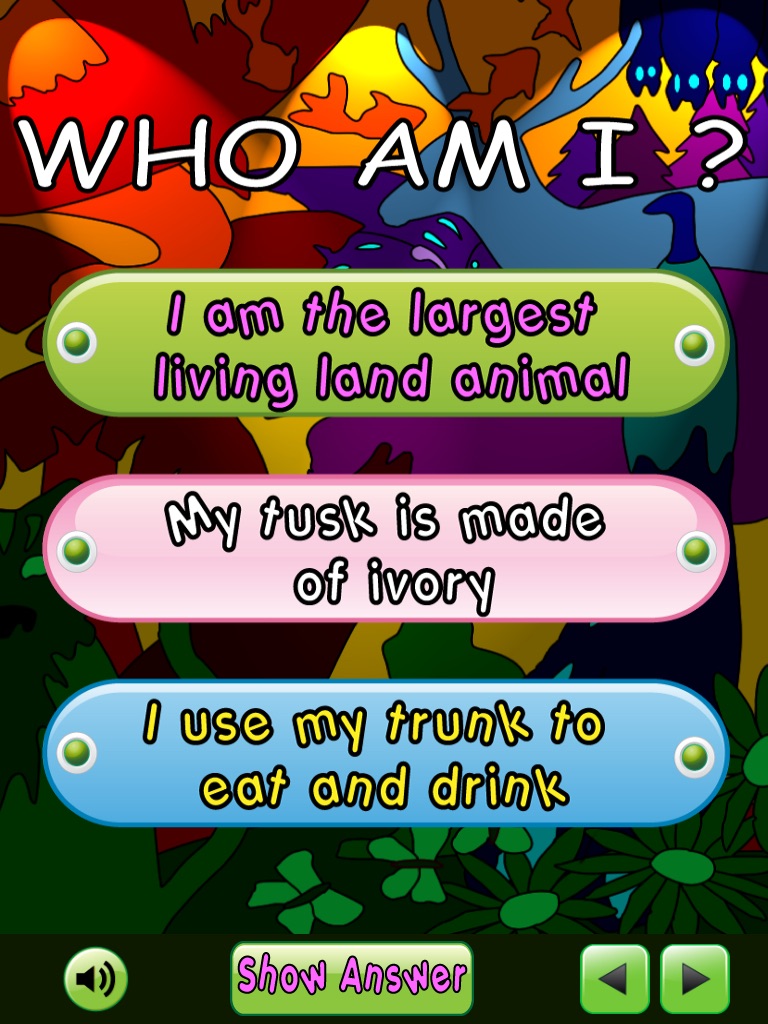 This inquisitive flash card like app will present clues and let you guess the correct animal, similar to a traditional "Who am I game". The app is designed to strengthen reading skills, memory, skills in associating pictures, words and sounds.
