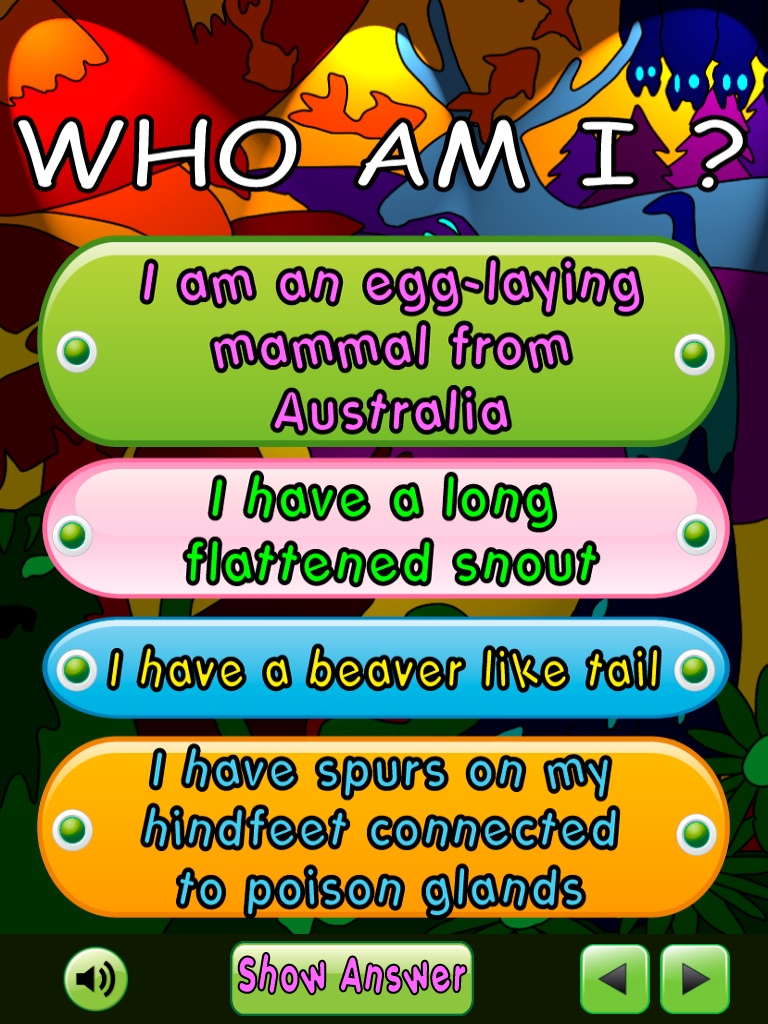 + "Show Answer" will reveal the picture, and name pronounciation of the animal