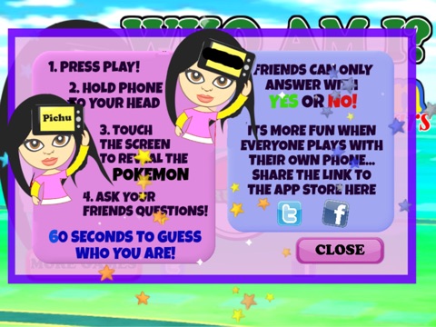 Just hold your phone or tablet to your head, tap the screen to reveal the character name, then ask questions to your friends to help you guess which character you are! Friends can only answer yes or no and you have a time limit of 60 seconds, so make sure you ask good questions!