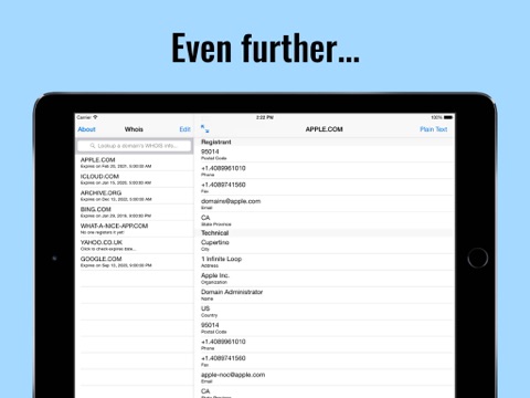 Want to check a domains whois information easier? Try our new Whois Tools now! This tools have the most convenient user interface ever for you to check whois information right on your iPad, iPhone and iPod Touch.